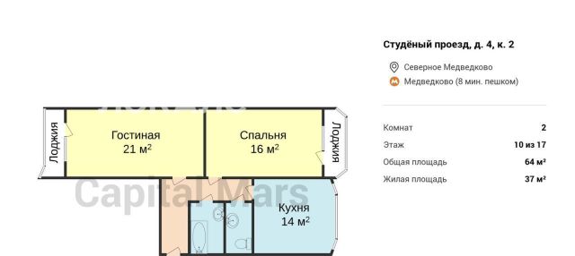2-к кв. Москва Студеный проезд, 4К2 (64.0 м²)
