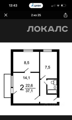2-к кв. Москва Судостроительная ул., 37/11 (36.6 м²)