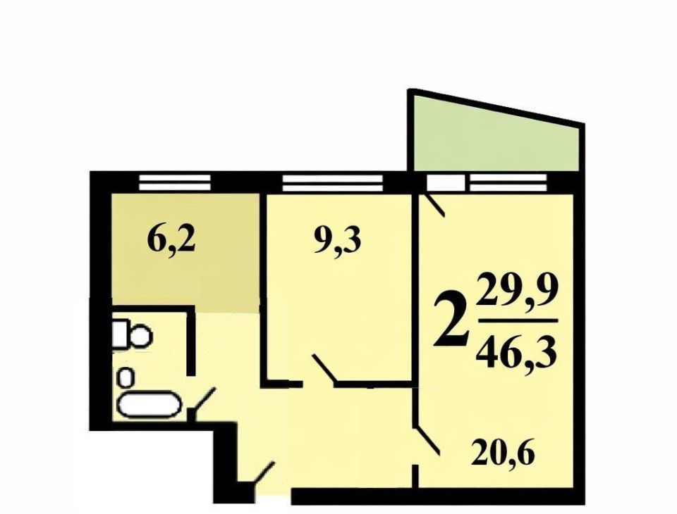 Общая площадь — 46,3 м²