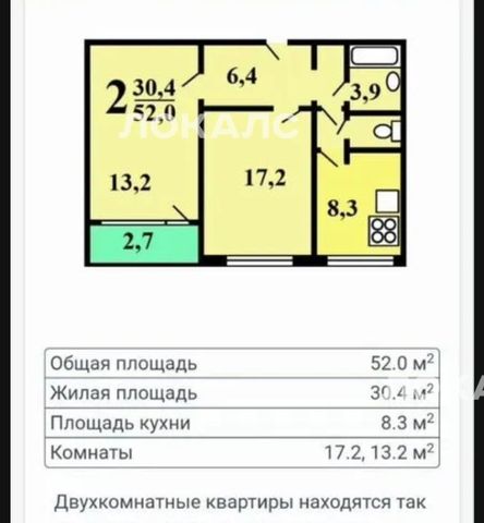 2-к кв. Москва Свободный просп., 21/2 (52.0 м²)