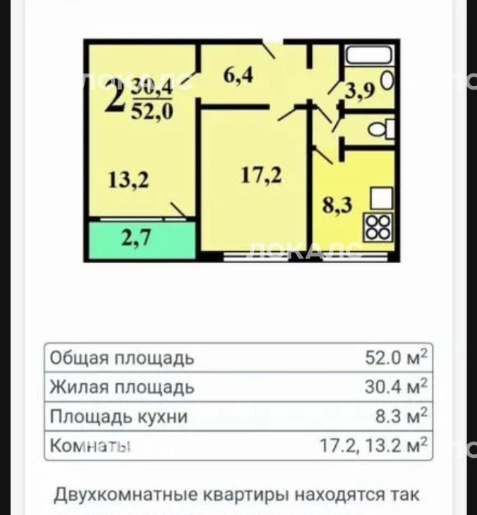 2-к кв. Москва Свободный просп., 21/2 (52.5 м²)