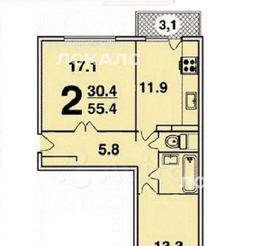 2-к кв. Москва Святоозерская ул., 11 (55.4 м²)