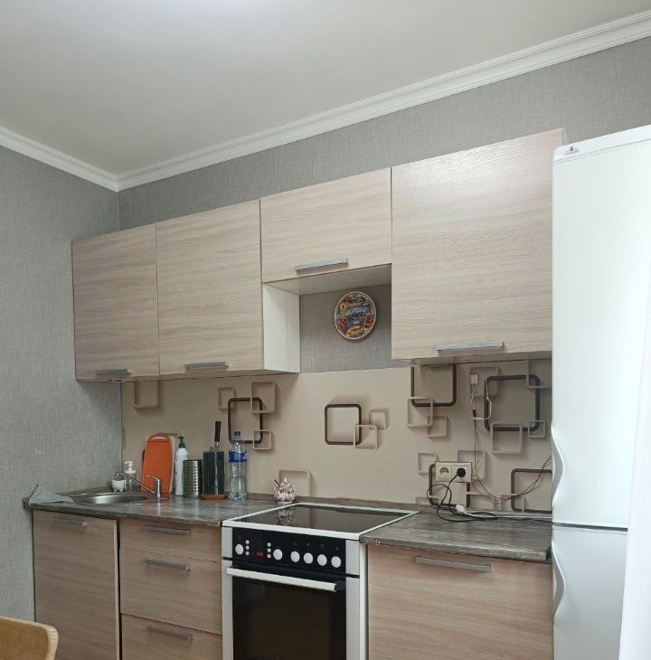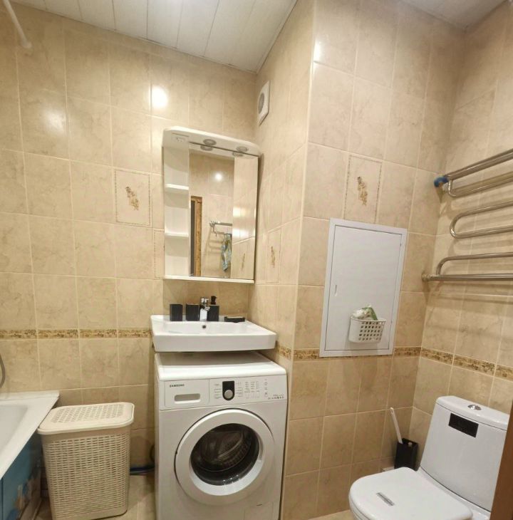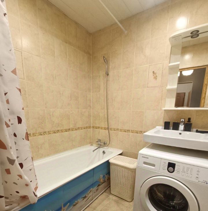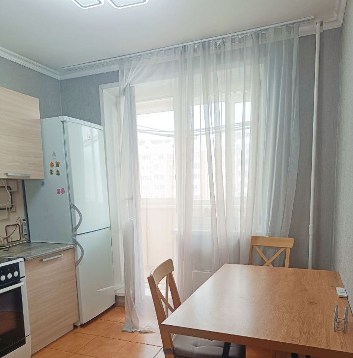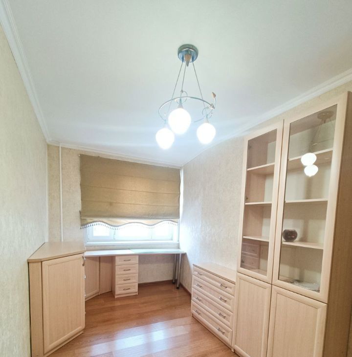 Просторная светлая квартира с отдельной спальней и рабочим кабинетом. Большая кухня с выходом на застекленную лоджию оснащена необходимой техникой и мебелью. Санузел совмещенный, установлена стиральная машина. В квартире есть необходимая мебель: двуспальная кровать, шкафы, письменный стол, прихожая, в коридоре встроенный шкаф.