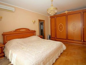 Функциональная двушка в кирпичном доме. Квартира с удачной планировкой, хорошая шумоизоляция. Классичкский добротный ремонт. Пол - дубовый паркет. В каждой комнате кондиционер. В большой комнает вместительные шкафы и диван. В маленькой комнате шкаф и двухспальная кровать. На кухне гарнитур из массива вишни, обеденная группа, холодильник.