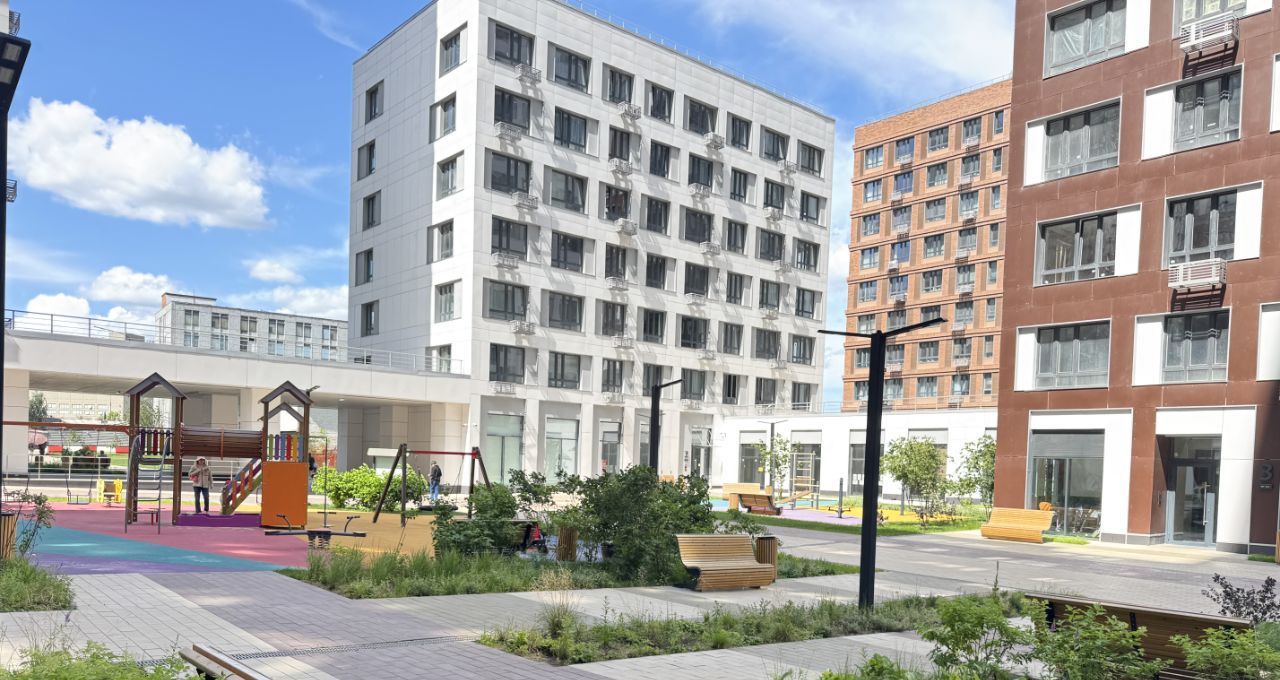 Для фасадов домов была выбрана цветовая палитра спокойных природных оттенков. Отделка натуральным кирпичом и современная система навесных панелей создадут неповторимый элегантный облик. Во дворе несколько прекрасно оборудованных детских площадок.