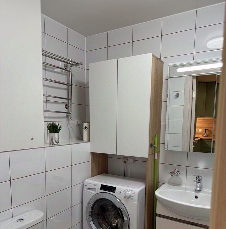 Ванная комната: удобная организация пространства, тропический душ, стиральная машина с быстрыми режимами, полотенцесушитель, все необходимые аксессуары.