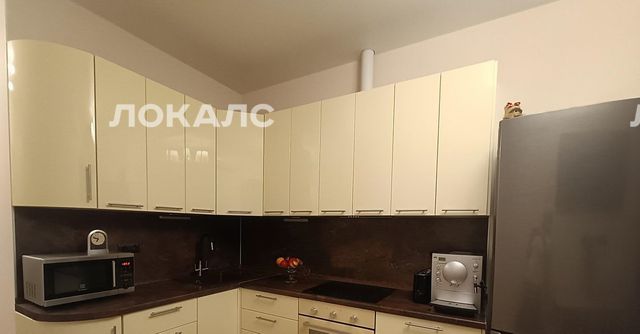 В кухне-гостинной: напольные и навесные кухонные шкафы по спецпроекту, мойка из керамики, смеситель с изливом под фильтрованную воду, электрическая варочная панель на 4 точки нагрева, электрический духовой шкаф с конвекцией, встроенная вытяжка с подсветкой (выведена к системе вентиляции), проточная система тройной фильтрации воды (чистая вода для питья и приготовления пищи, нет нужды покупать бутилированную воду), обеденный стол с 4 стульями, кондиционер с функциями охлаждения и нагрева, раскладывающийся диван с большим спальным местом (210 X 200), с ящиком для хранения под спальным местом, шторы по индивидуальным размерам (блэкаут, полностью не пропускают свет). В наличии: микроволновая печь с грилем, инверторный холодильник LG (высота 185, экономичный класс энергопотребления, бесшумный), кофе-машина, телевизор LG (Smart, подключается к WiFi, большая диагональ) + приставка МТС (TV + KION).