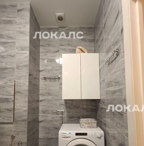 В ванной комнате: акриловая ванна Cersanit, эргономичный душ с верхней тропической лейкой, раковина с тумбой с двумя выдвижными ящиками для гигиенических средств, большое зеркало, настенный двустворчатый шкаф для хранения бытовых принадлежностей, унитаз с микро-лифтом сиденья и гигиеническим душем, универсальная стиральная машина Candy с функцией сушки белья, электро-полотенцесушитель, вытяжной электровентилятор.