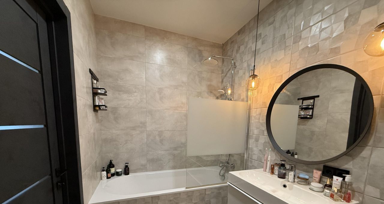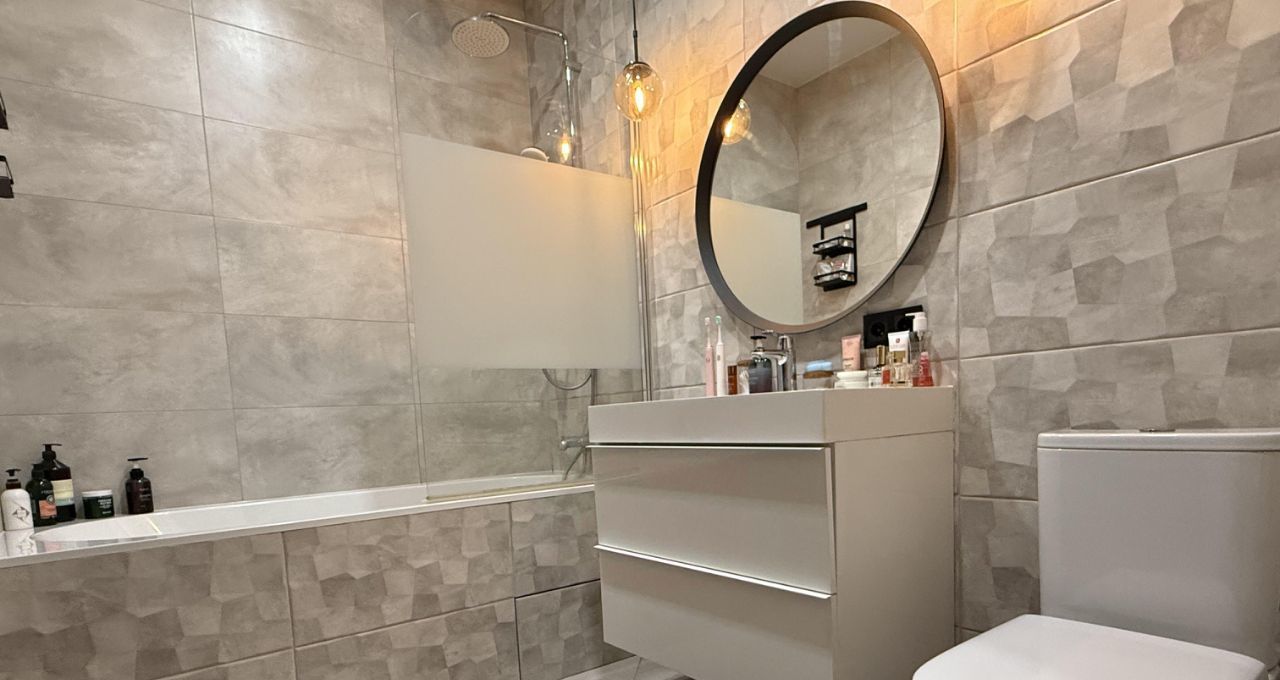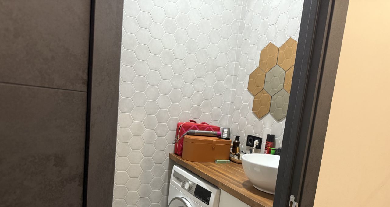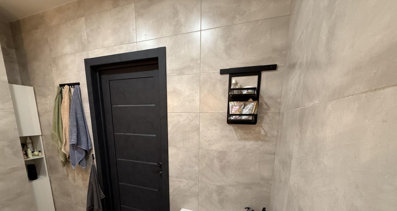 Два санузла оборудованы премиальной сантехникой Villeroy & Boch и Jacob Delafon. В каждом помещении предусмотрены сценарии освещения — от мягкого приглушённого до яркого рабочего света. В ванной комнате установлены лампы с Bluetooth — можно подключить любой гаджет и наслаждаться любимой музыкой.