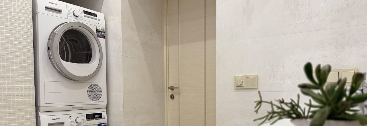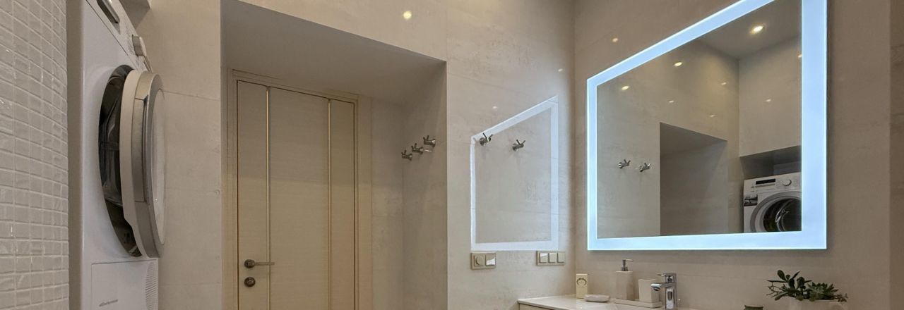 В квартире имеется стиральная машина Siemens, сушильная машина Siemens, бойлер на время отключения горячей воды, посудомоечная машина Siemens, 2 телевизора, кровать с ортопедическим матрасом, духовка AEG, варочная панель, холодильник Liebherr, отдельная морозильная камера Liebherr, пылесос Dyson, фильтр для питьевой воды АКВАФОР.