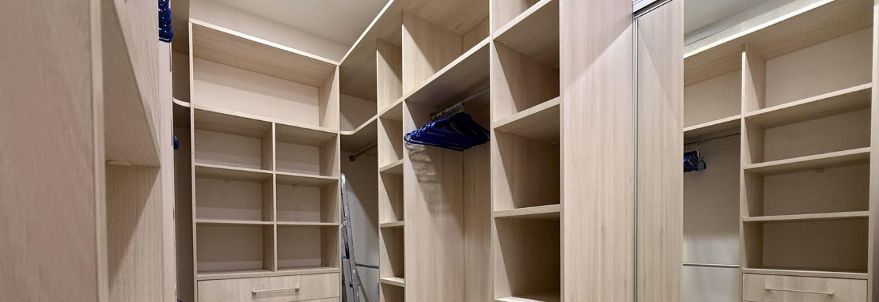 ГАРДЕРОБНАЯ КОМНАТА! Большая. Очень вместительная и удобная! Много полок и ящиков, имеются вешалки и стремянка.