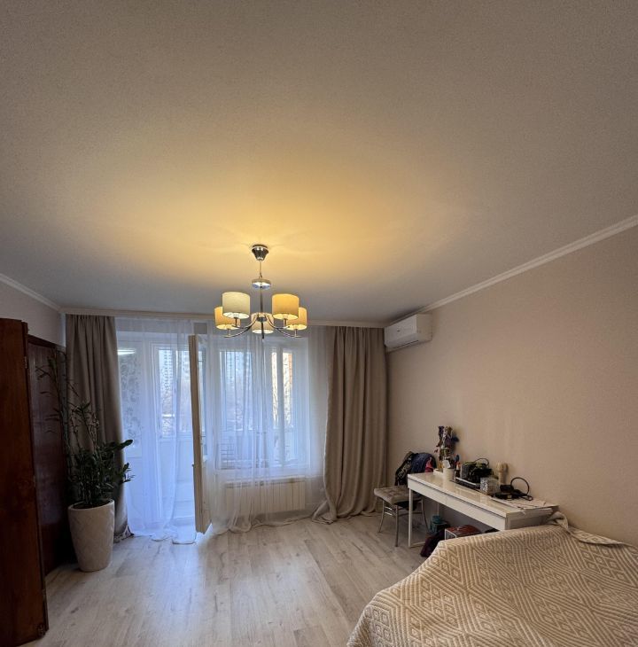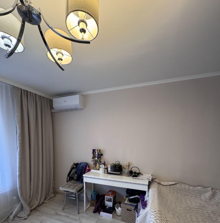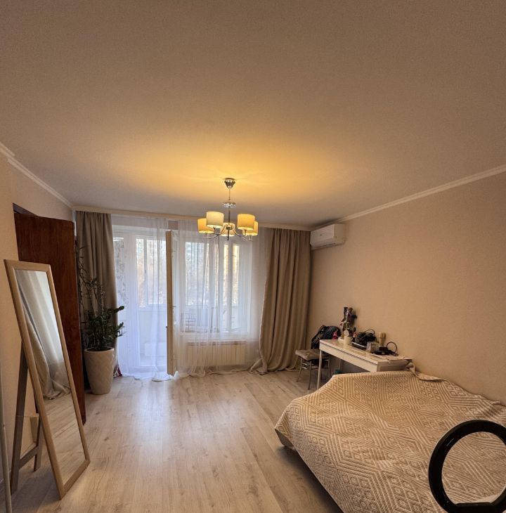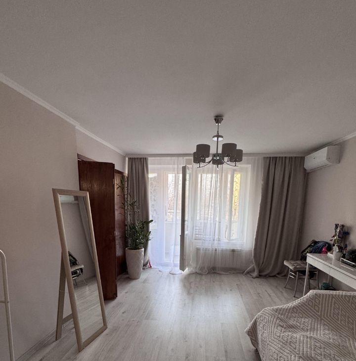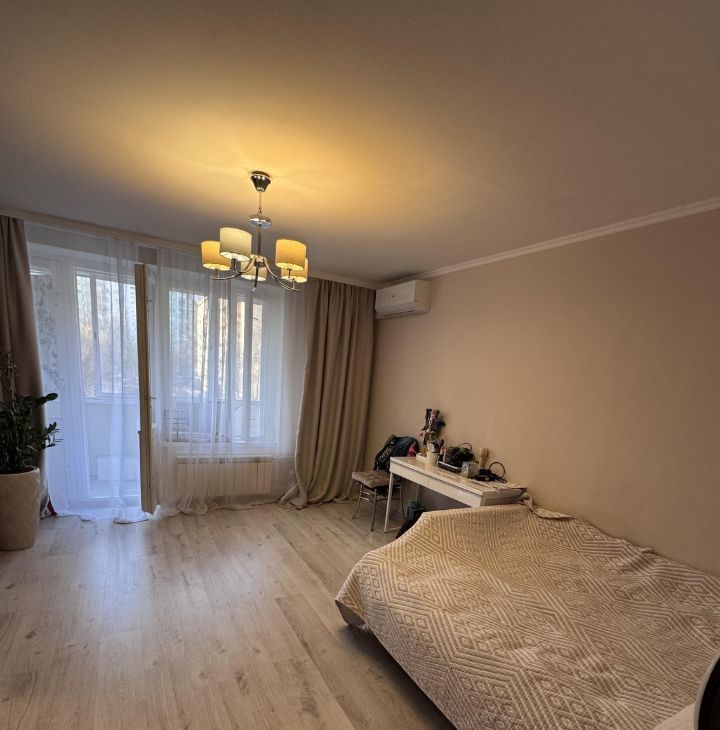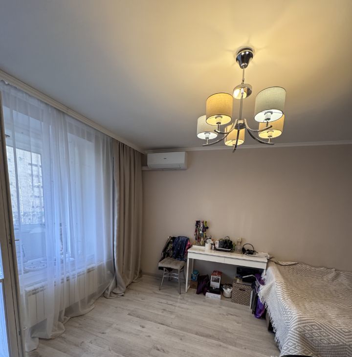 Современная мебель . ( диван , кровать с ортопедическим матрасом , рейлы для одежды . Стол в гостиной и обувницу забирает наниматель. Установлен кондиционер .