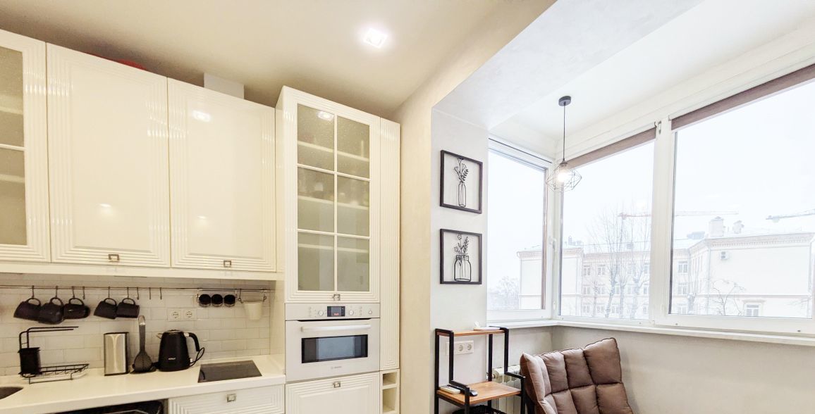 Раздельный санузел, ванная. Комфортный 4й этаж. Лоджия совмещена с кухней. Окна в тихий двор.