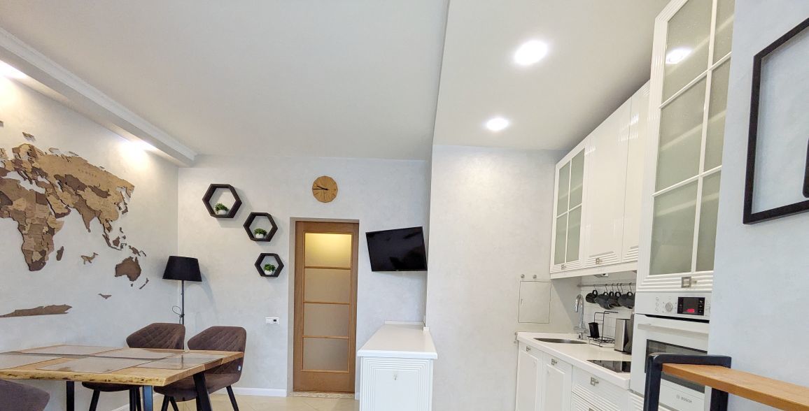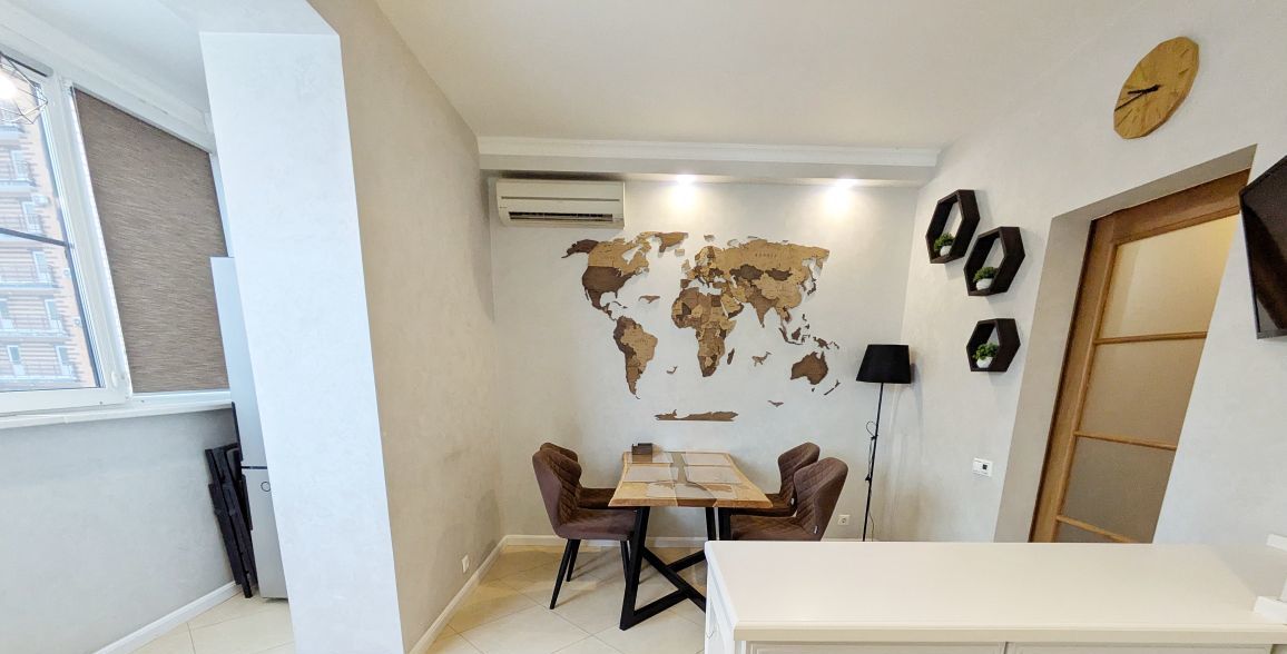 Квартира оснащена всей необходимой мебелью и качественной техникой (3 кондиционера, посудомоечная машина,духовка,варочная панель, стиральная машина, робот пылесос, два телевизор, двуспальная кровать 180*200,раскладной диван,комфортная рабочая и обеденная зоны).