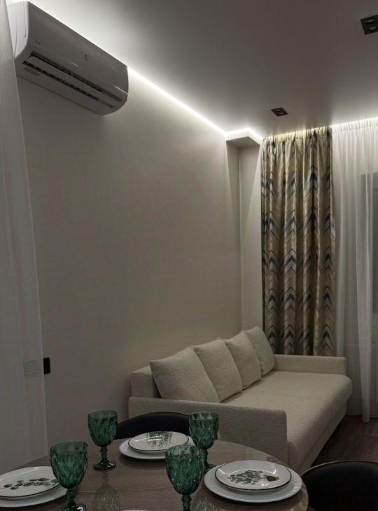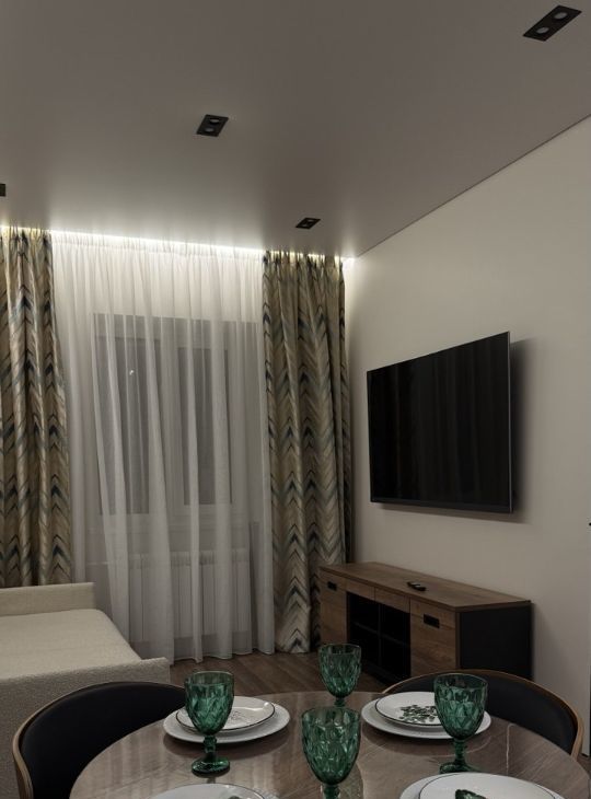 Гостинная с телевизором 65 дюймов, диваном на 200м.