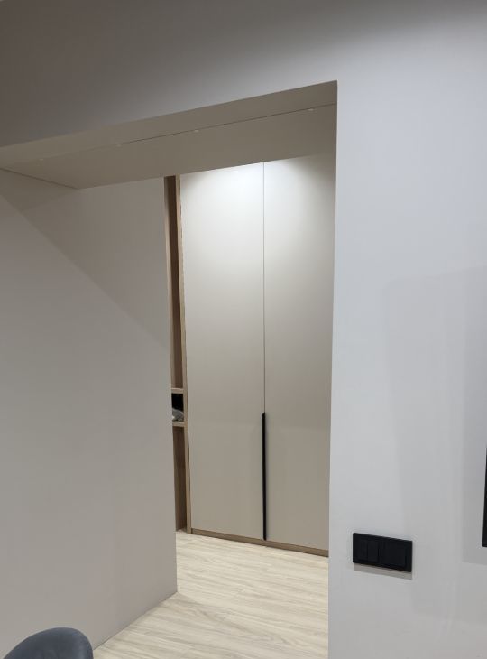 В спальной зоне установлена двуспальная кровать с дорогим ортопедическим матрасом Askona, обеспечивающим высокий уровень комфорта и поддержки во время сна.