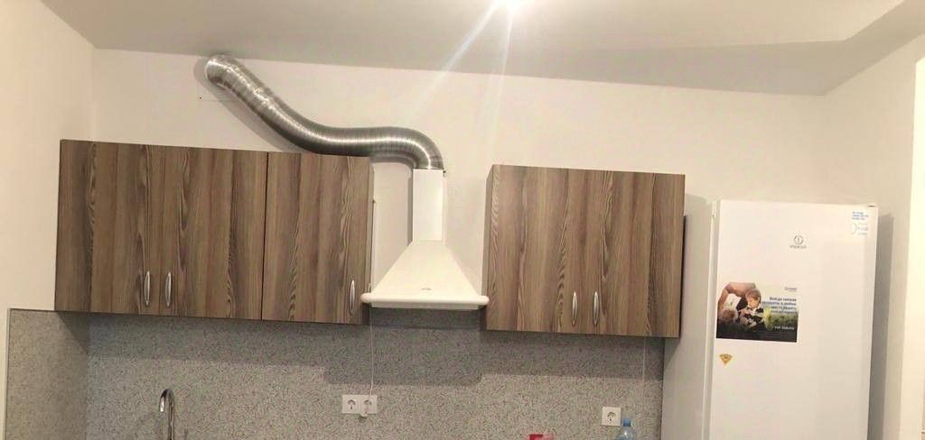 В квартире имеется вся необходимая техника, кухонный гарнитур, стиральная машинка, холодильник, плита.