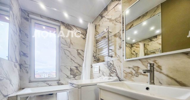 Уникальная фишка - окно в ванной с панорамным видом с 11-го этажа.