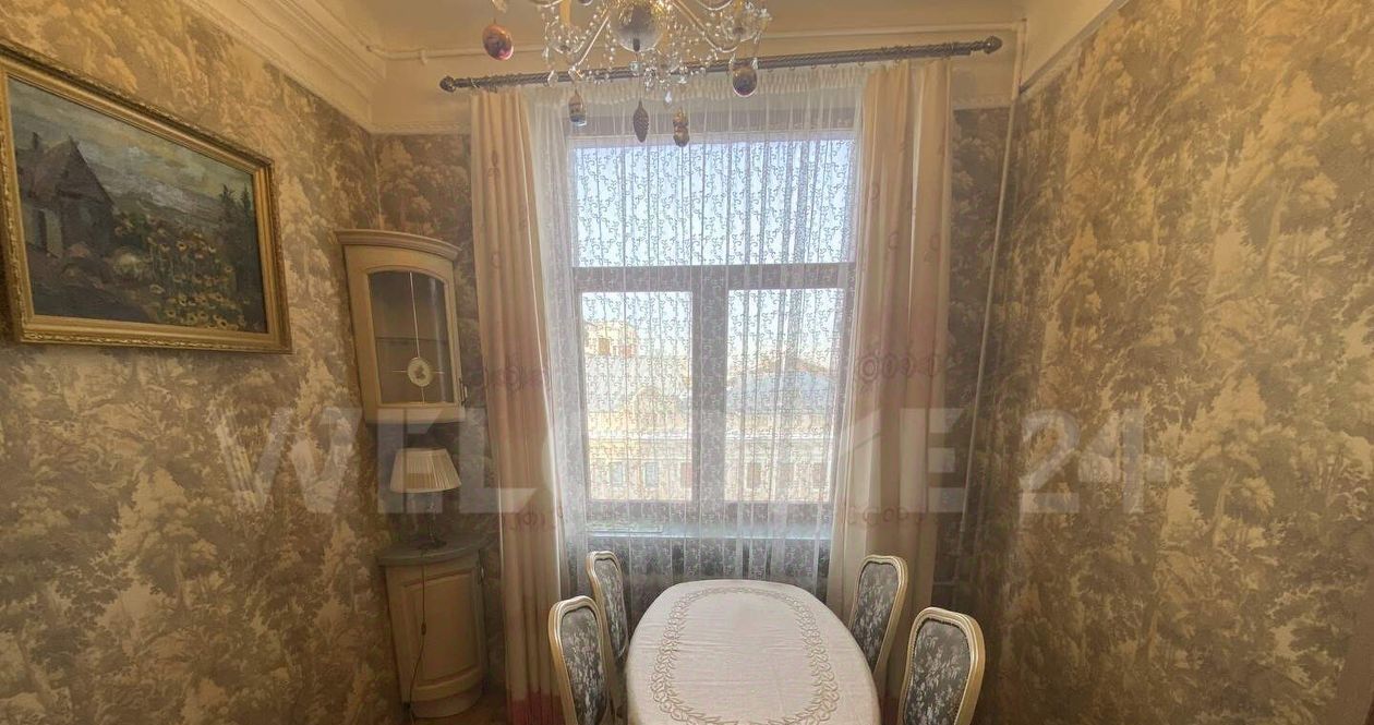 Высокое расположение квартиры на шестом этаже фасадного сталинского дома, построенного в 1940 году, защищает от шума улицы.