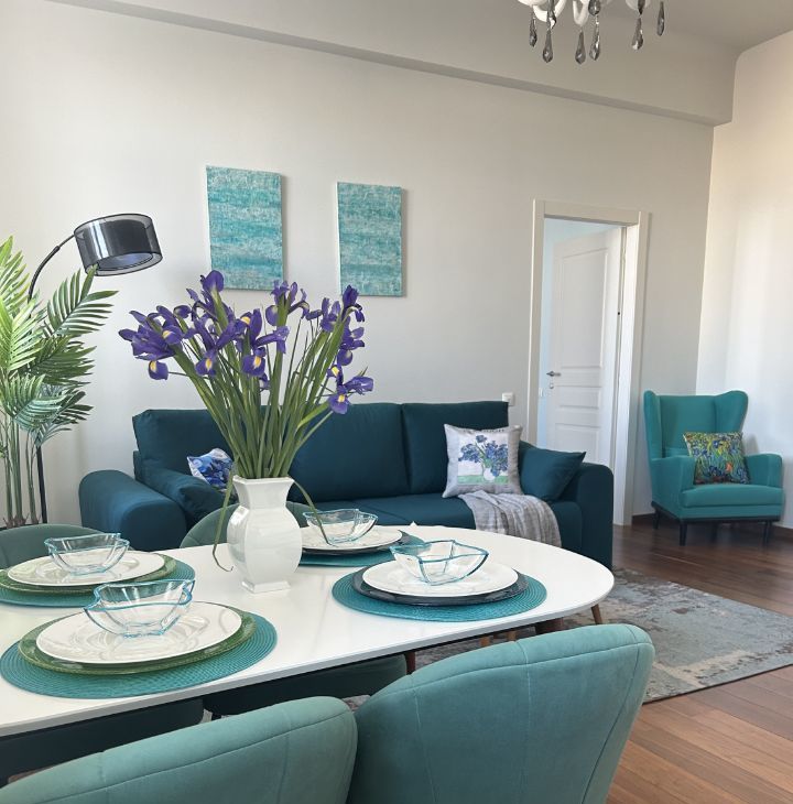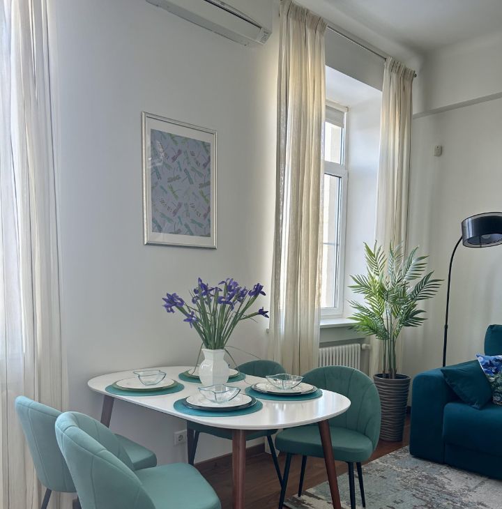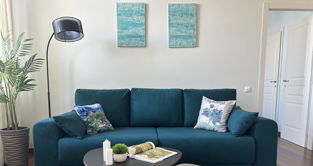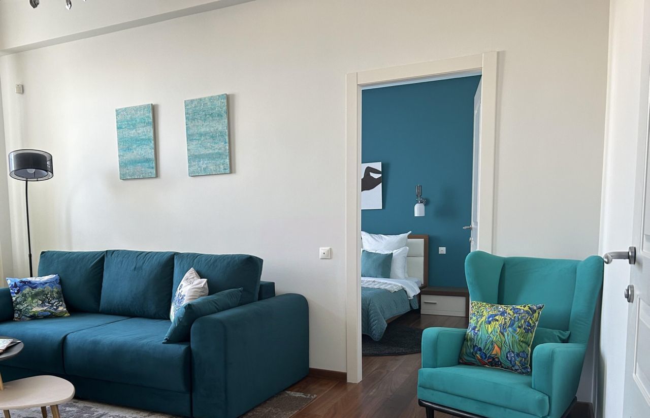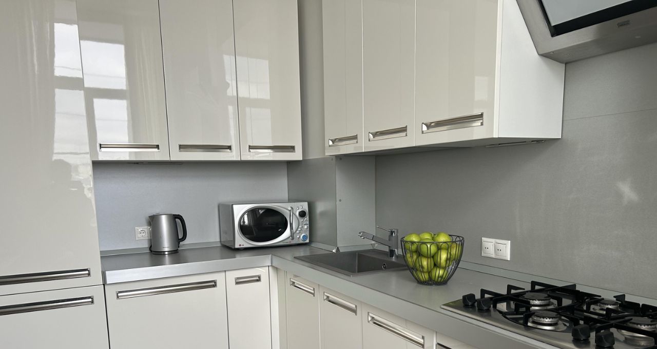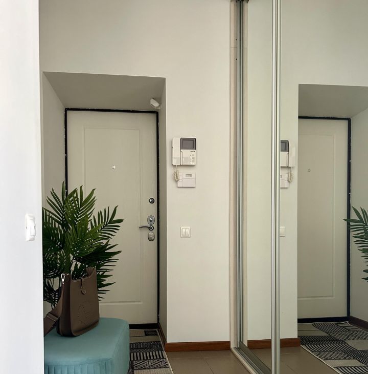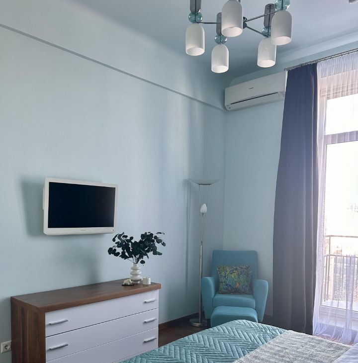 Функциональная планировка: кухня-гостиная, спальня с балконом и просторной гардеробной, совмещенный с/у с душевой кабиной. Вся встроенная техника, бойлер, кондиционеры. Диван в гостиной раскладывается.
