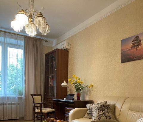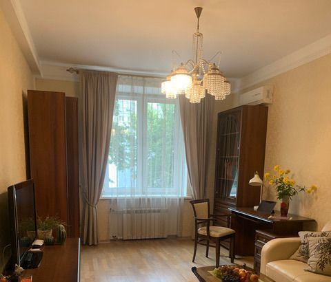 Уютная двухкомнатная квартира 56 кв.м.в историческом центре города. 2/9 этаж сталинского фасадного дома. Роскошная инфраструктура центра Москвы - музеи, театры Красивый читый подьезд, лифт. Удобная планировка: потолки 3,2 м, кухня 12м., спальня и гостиная. Полностью меблирована, Кухня оснащена всем необходимым. Готова к проживаю. Окна выходят в тихий зеленый двор. Огороженная охраняемая территория с парковкой во дворе. Лучшая в Москве пешая и транспортная доступность.