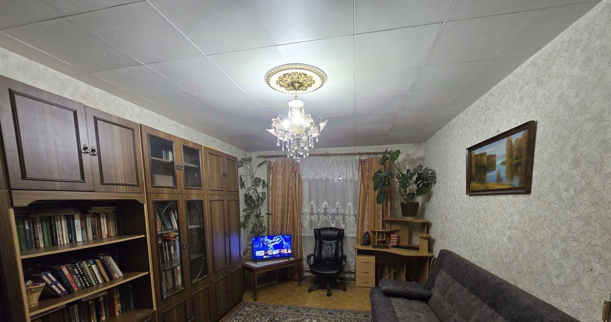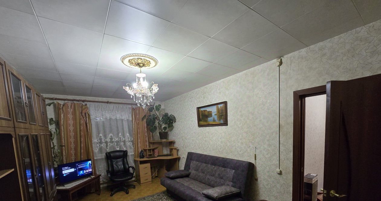 Квартира оборудована мебелью для размещения вещей, комфортным диваном и кроватью, а также в большой комнате расположен плазменный телевизор.