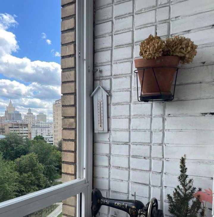 • Застекленный балкон, из окон открывается впечатляющий вид на знаковые высотки и архитектурные символы центра Москвы.