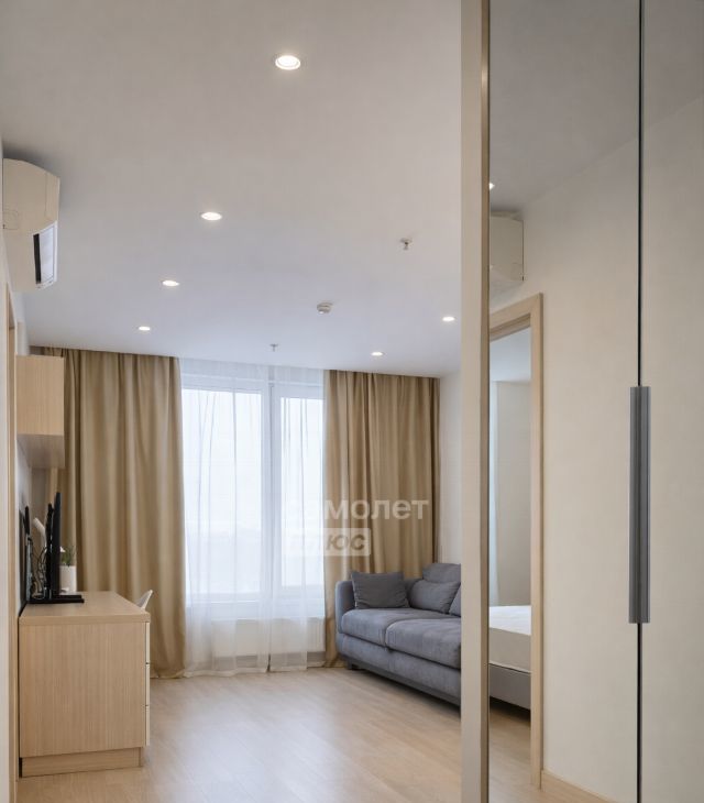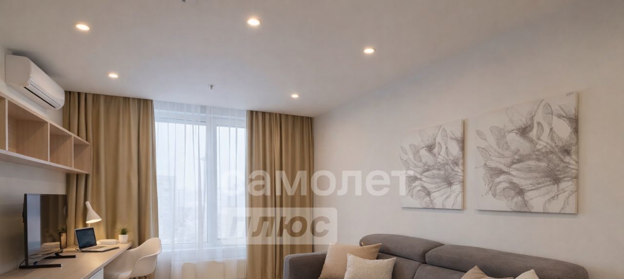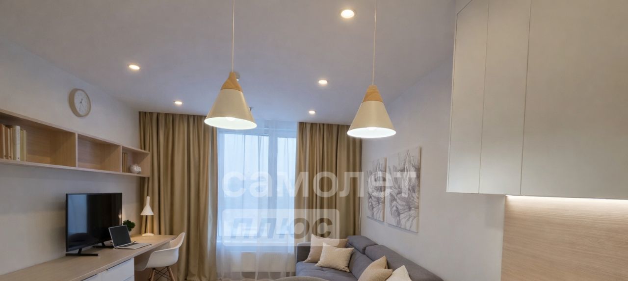 гостиная зона для отдыха и работы: комфортный диван, оборудованное рабочее место, телевизор и высокоскоростной интернет;
