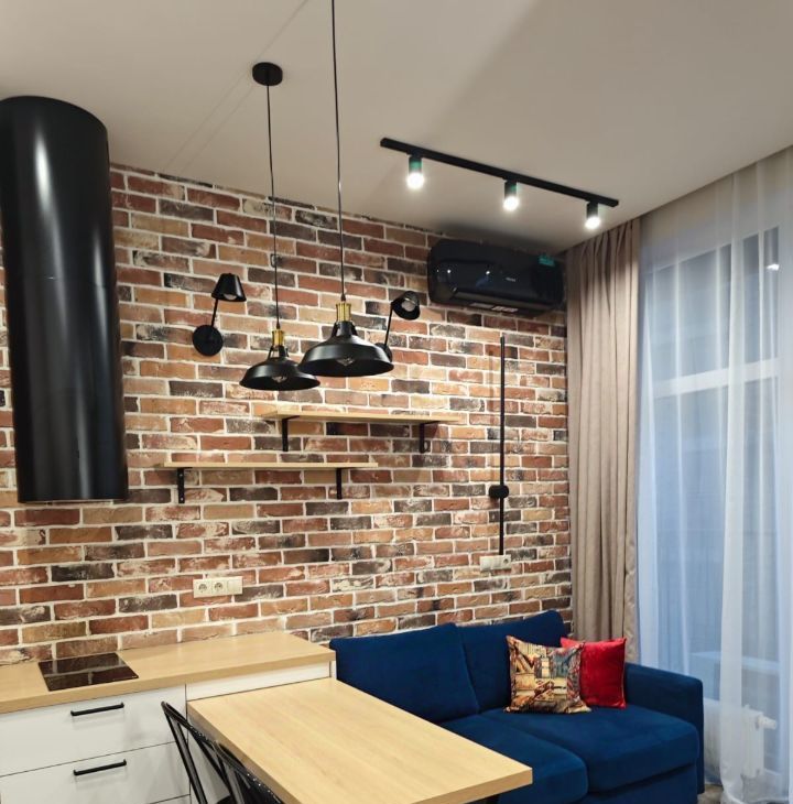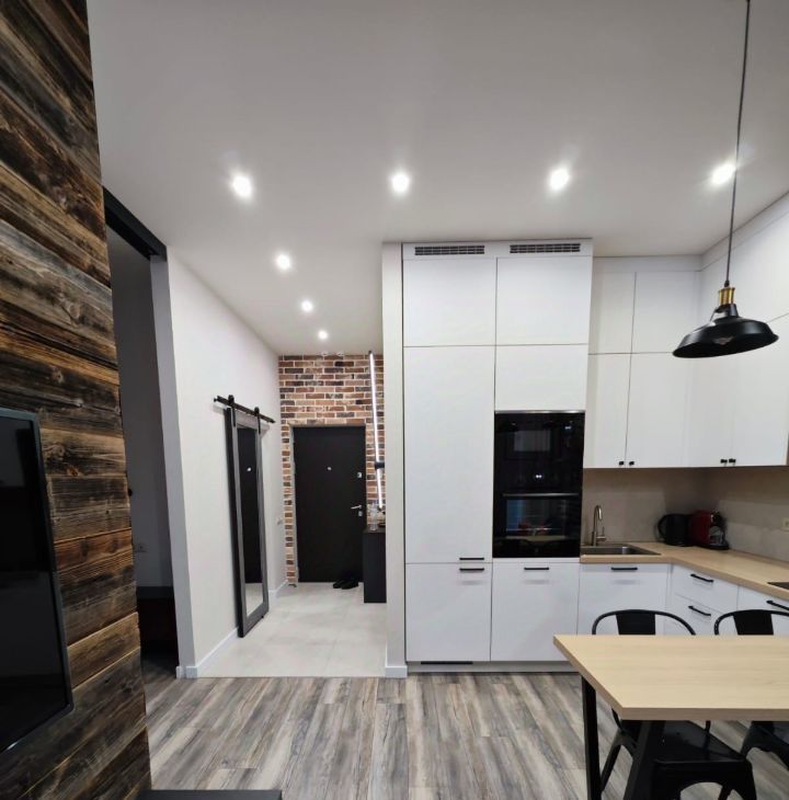Дизайнерский евро ремонт! Уютный Лофт. Панорамные окна в пол. Использованы дорогие современные материалы. Световая инсталляция наполняет пространство энергетикой роскоши. Грамотно продуман каждый см., мебель и техника. Полы с подогревом.