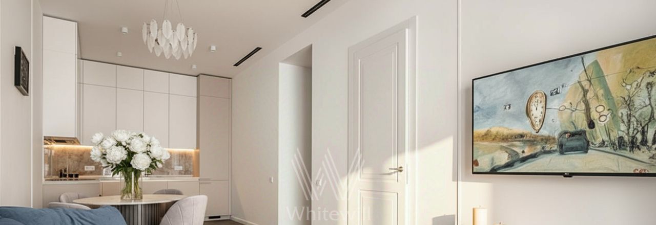 Светлые апартаменты в комплексе бизнес-класса Slava в пяти минутах от "Белорусской". Выполнена премиальная отделка в современном стиле. Благодаря панорамным окнам и высоким потолкам пространство наполнено естественным светом. Спланирована кухня-гостиная, спальня, прихожая со встроенным гардеробом, санузел с душем. Апартамент полностью укомплектован мебелью и современной техникой. Установлена стиральная и посудомоечная машина, система кондиционирования. Из окон открывается вид на улицу.