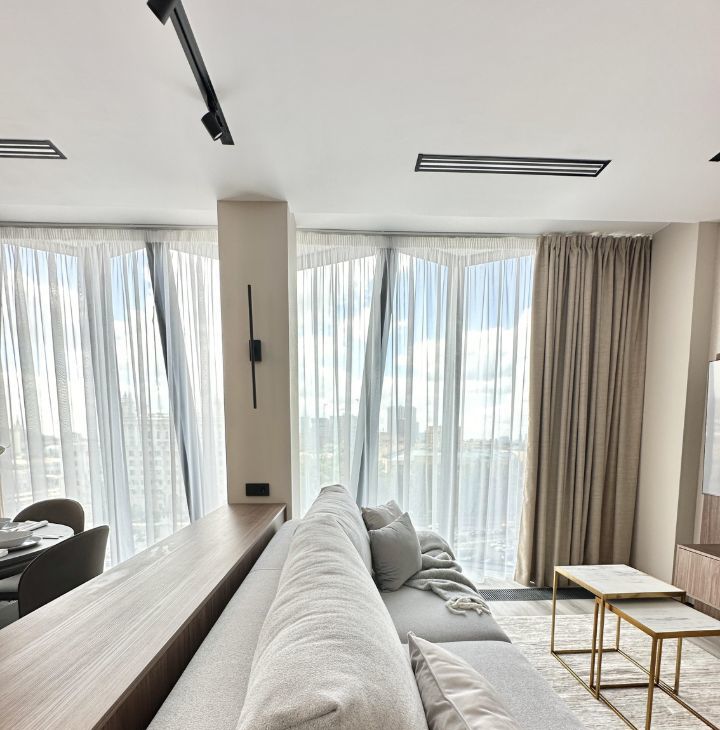 Сдается комфортабельная и эргономичная ДИЗАЙНЕРСКАЯ ЕВРОДВУШКА в двух минутах от м.Белоруская в ЖК премиум класса СЛАВА. Главный вход ! На 6 этаже 10 этажного дома с общей площадью 54 кв.м. ПАНОРАМНЫЕ ОКНА шикарный вид на Ленинградский проспект фото показано.