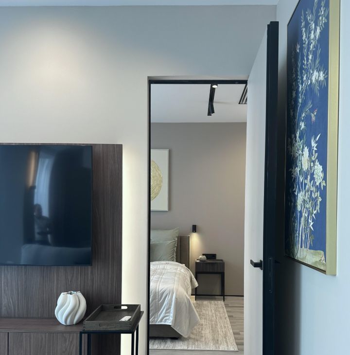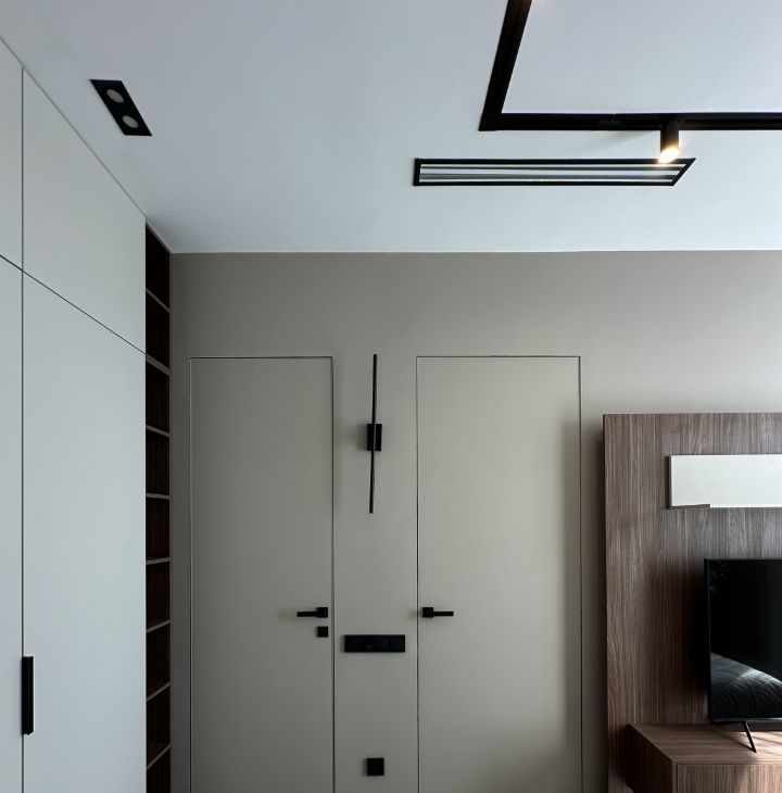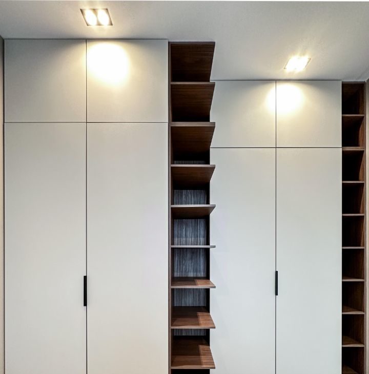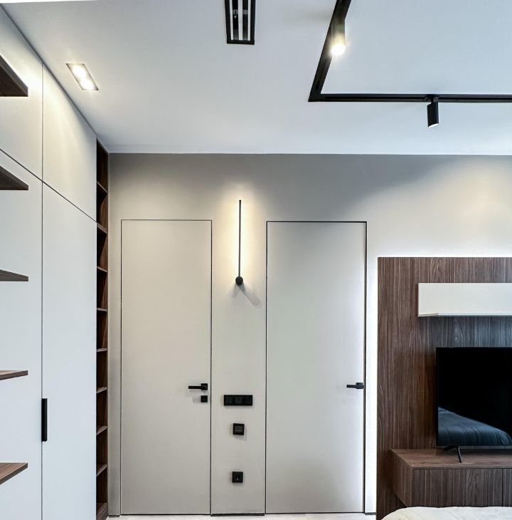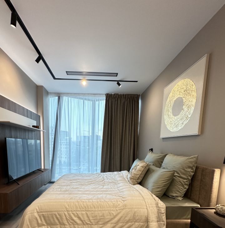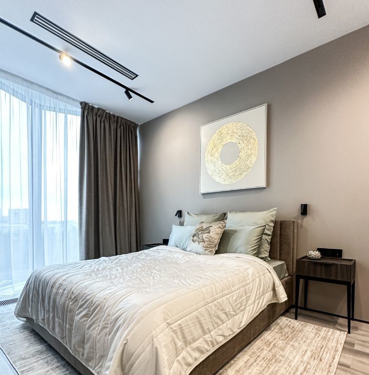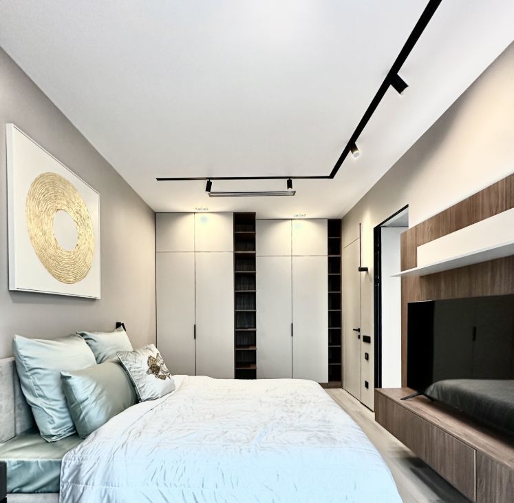- В спальной комнате имеется двух спальная кровать с подъемным механизмом размером 160/200, множество шкафов для одежды, две тумбы с подсветкой, в ванная комнате оснащена душевая кабина, санузел, и полотенцесушител.