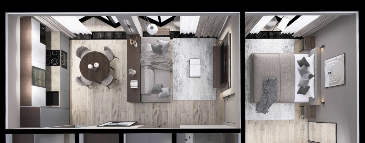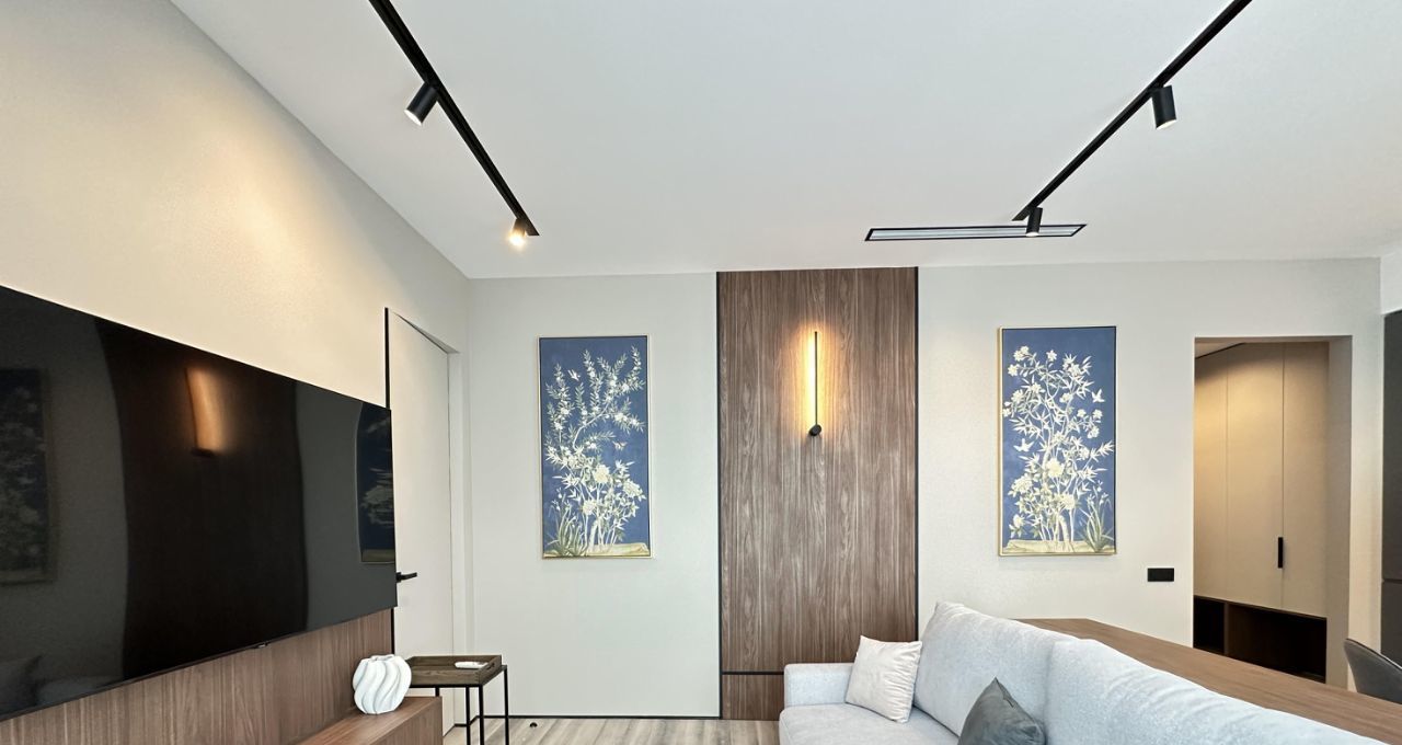 - Гостиная оснащена , стильным журнальным столиком, раскладным диваном, мультимедиа.