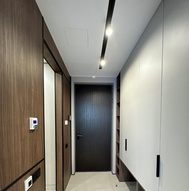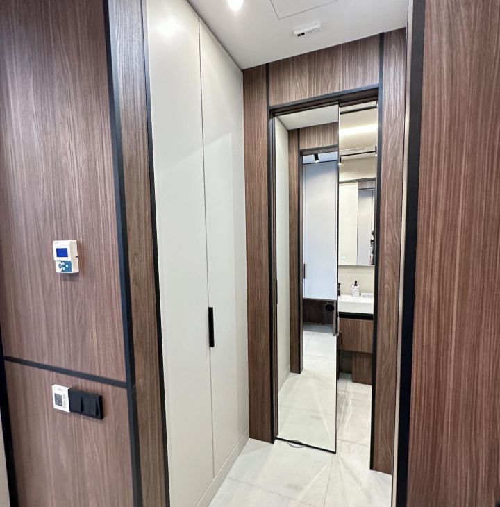 - Прихожая оснащена в вместительными шкафами, гостевым санузлом, большое зеркало с подсветкой над раковиной и тумбой, постирочная, стиральная машина + сушилка, теплый пол и ГАРДЕРОБНОЙ;