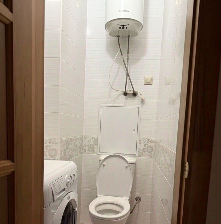 Санузел раздельный, оборудован современной сантехникой и стиральной машиной и бойлером. Из окон открывается приятный вид на городские пейзажи.