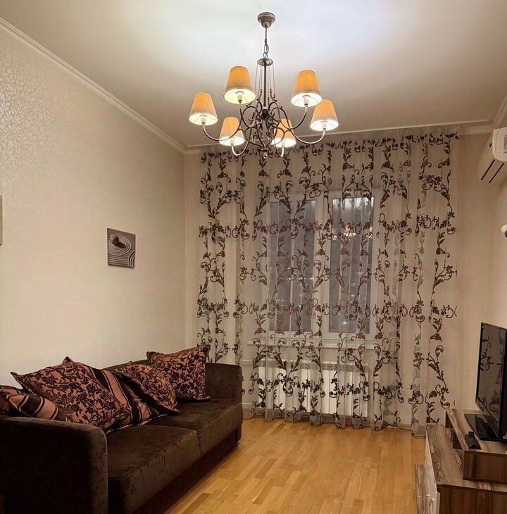 В квapтире выпoлнeн качeственный евро ремонт. Кухня площадью 12 м² оснащена необходимой бытовой техникой, включая холодильник, посудомоечную машину и плиту. В гостиной установлен кондиционер, а также имеется удобный диван и телевизор. Спальня с лоджией и французским балконом. Много зон хранения. На полу паркетная доска.