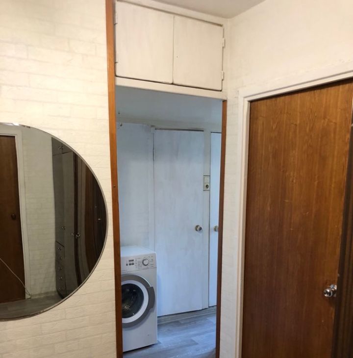 Кухня аккуратная и полностью укомплектована всей необходимой техникой: газовая плита, вытяжка, микроволновая печь, удобный кухонный гарнитур — можно сразу заехать и жить без дополнительных вложений.