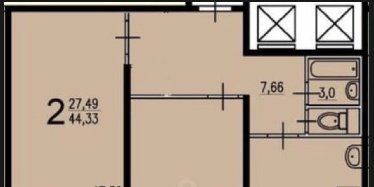2-к кв. Москва ул. 26 Бакинских Комиссаров, 12к3 (44.5 м²)