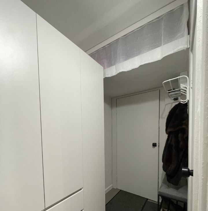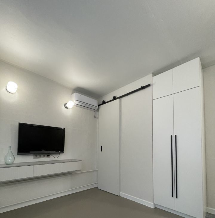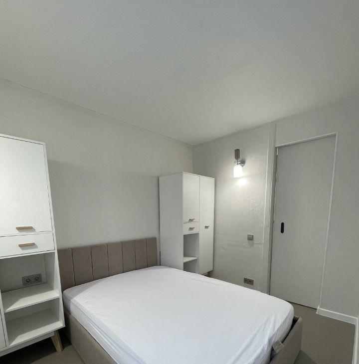 Изолированная спальня с кроватью с подъемным механизмом (дополнительное место хранения), новый матрас, шкафы. Гостиная с диваном - полноценным спальным местом, можно принимать гостей.
