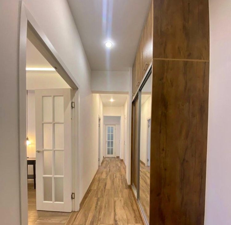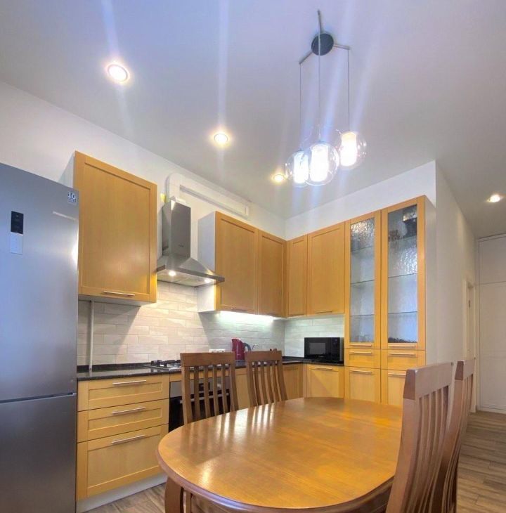Квартира оформлена в дизайнерском стиле. Две изолированные комнаты, просторная кухня и совмещённый санузел. Заменена электрика, по периметру полы с подогревом. На кухне установлена вся техника компании BOSCH, есть все необходимое для комфортного проживания. Стены из кирпича, шумоизоляция на высшем уровне. Для автомобилей предусмотрена наземная парковка во дворе.
