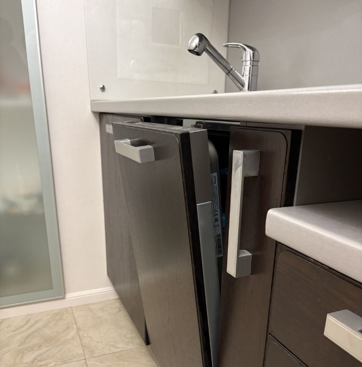 На кухне современная мебель с встроенной техникой, холодильник Liebherr.