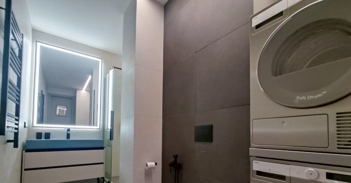 Евро-двухкомнатная с дорогим ремонтом в современном стиле в ЖК Невский. Редкий по красоте жилой комплекс, презентабельные входные группы, огороженная территория с ландшафтным дизайном, профессиональная круглосуточная охрана, подземный паркинг. Уникальная планировка, в квартире 6 окон, из них 3 панорамных, с видом в красивый двор. Квартира очень солнечная. Планировка - кухня-гостиная, из нее вход в изолированную спальню, в спальне гардеробная комната с окном. В ремонте использовалась премиальная сантехника и бытовая техника, в квартире есть абсолютно все для комфортной жизни (вплоть до отдельной сушильной машины, помимо стиральной машины, дополнительной встроенной морозильной камерой и т.п.). Разумеется, есть посудомоечная машина, кондиционер (в гостиной и спальне), бойлер на период отключения горячей воды и т.д. Квартира свободна и полностью готова к заселению.