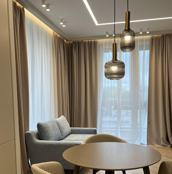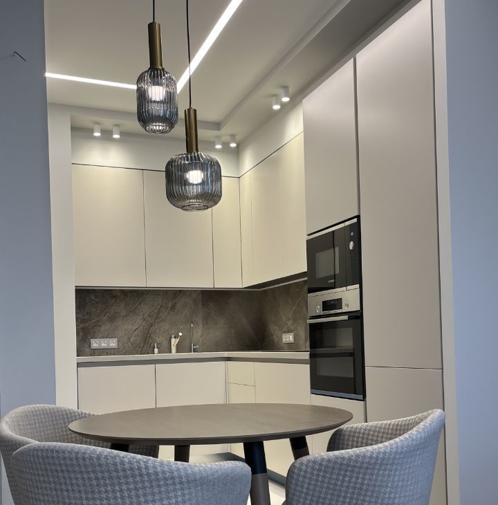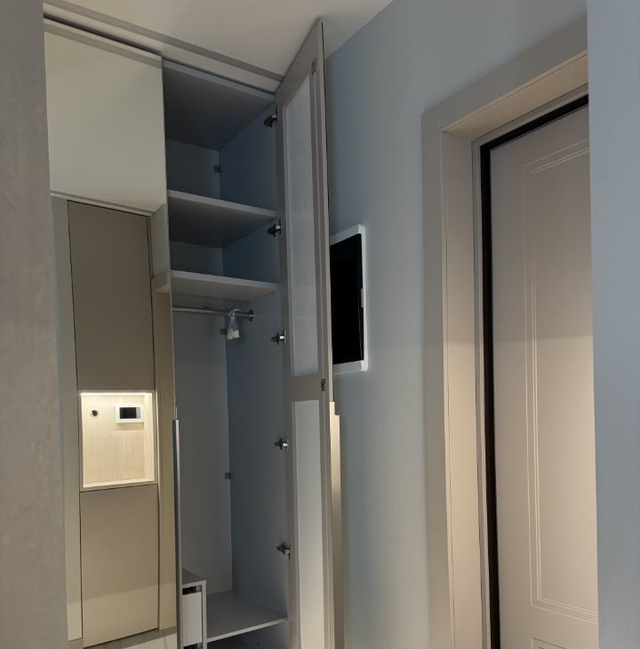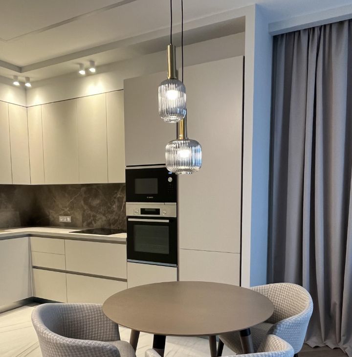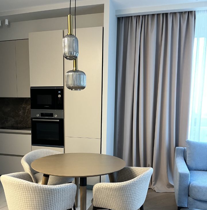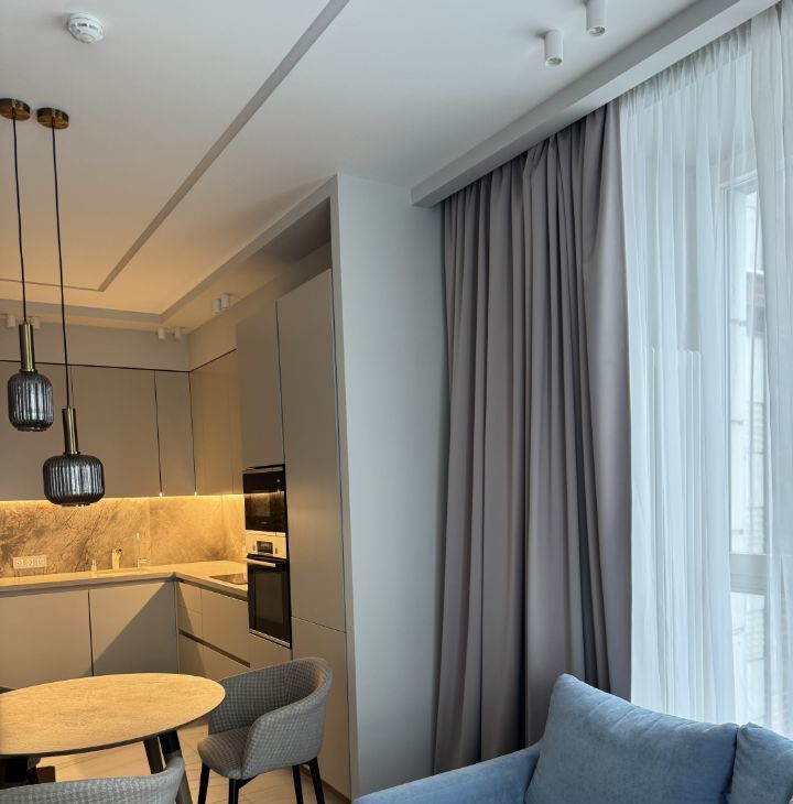 Современная квартира 42 м² в престижном доме бизнес-класса с закрытой охраняемой территорией, консьержем и подземным паркингом. Элегантный дизайнерский ремонт подчеркивает продуманную планировку: изолированная спальня с панорамными окнами, стильная кухня-гостиная с высокотехнологичной встроенной техникой (холодильник, индукционная панель, посудомоечная машина, духовой шкаф, микроволновка, вытяжка, фильтр для воды). Дополнительный комфорт обеспечивают отдельная постирочная комната, система кондиционирования, защита от протечек Аквастоп и проточный водонагреватель (на период отключения горячей воды).