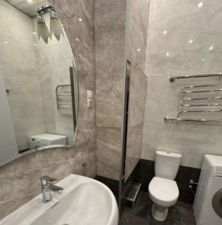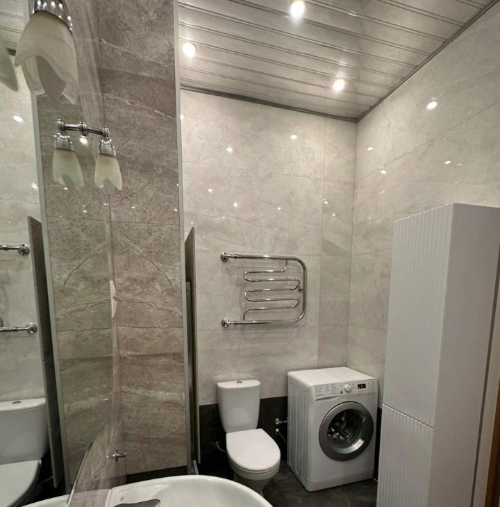 - Санузел отделан современными материалами, обеспечивающими удобство и гигиеничность.