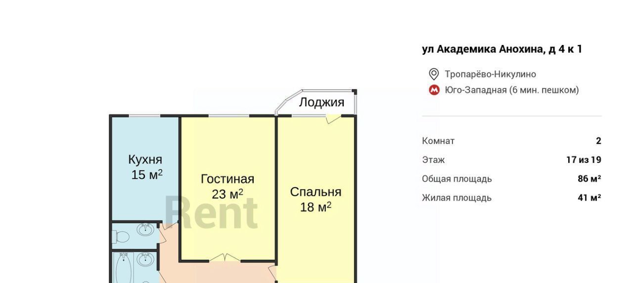 2-к кв. Москва ул. Академика Анохина, 4К1 (86.0 м²)
