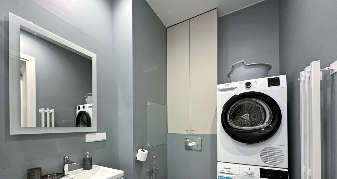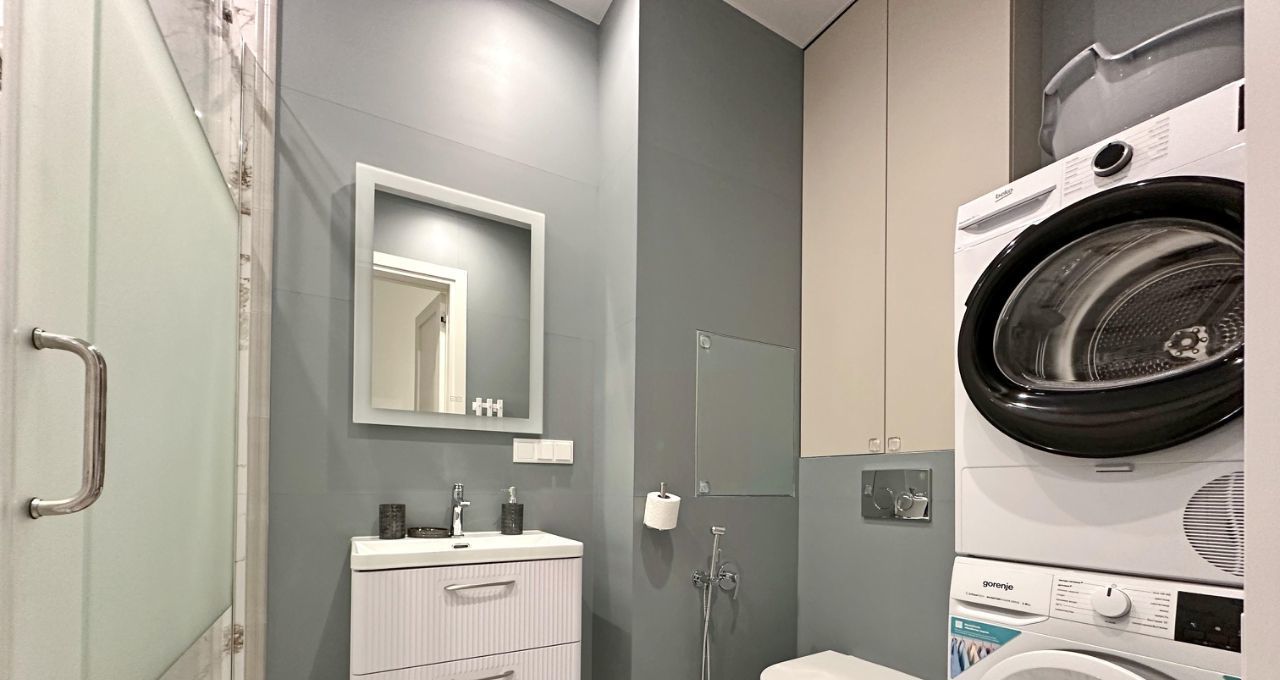 Квартира укомплектована новой мебелью и современной техникой (стиральная машина, СМА, ПММ, кондиционер и т.д.).