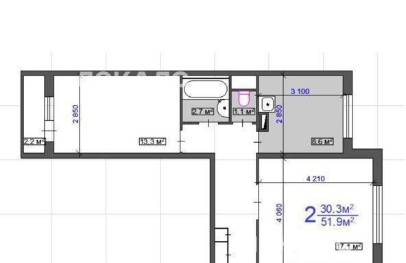2-к кв. Москва ул. Академика Челомея, 10 (51.9 м²)