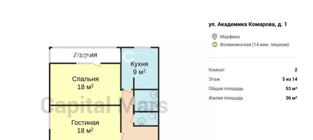 2-к кв. Москва ул. Академика Комарова, 1 (53.0 м²)