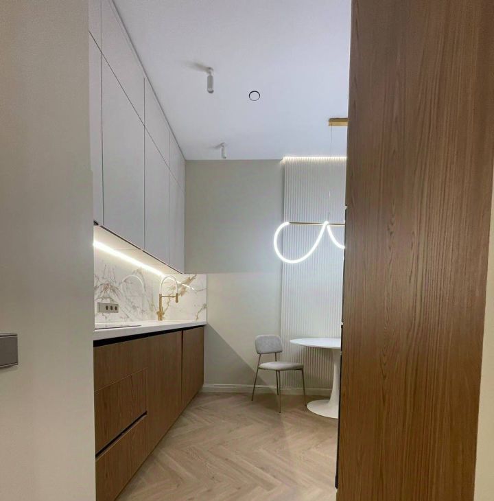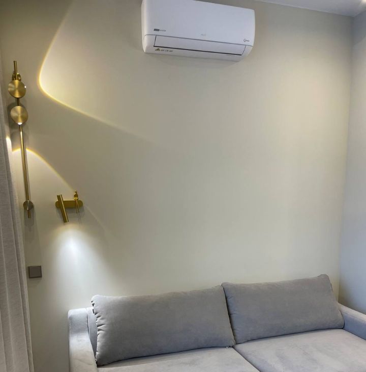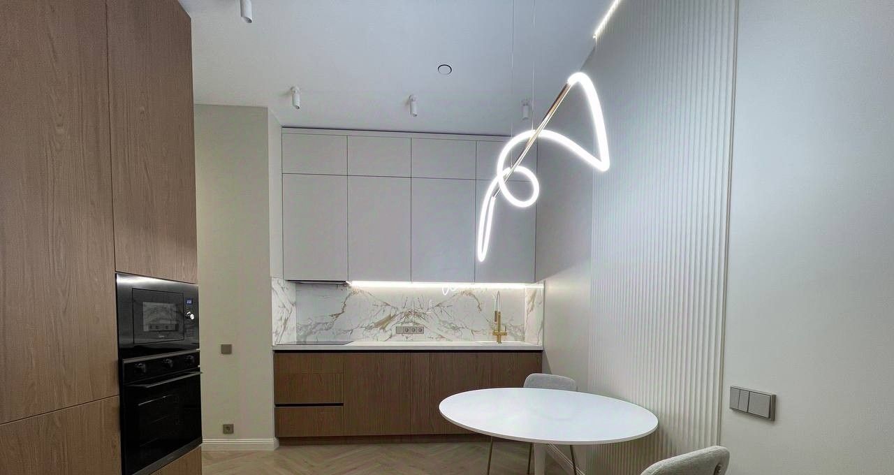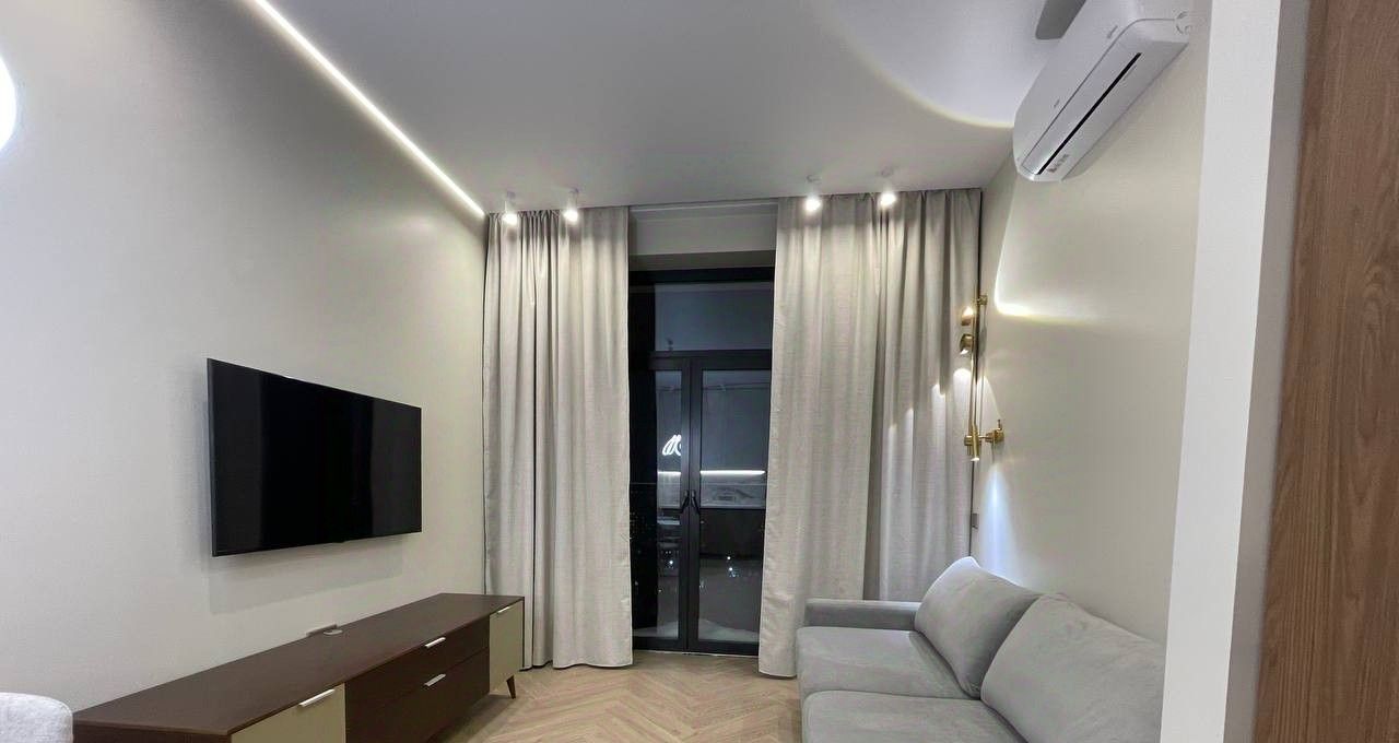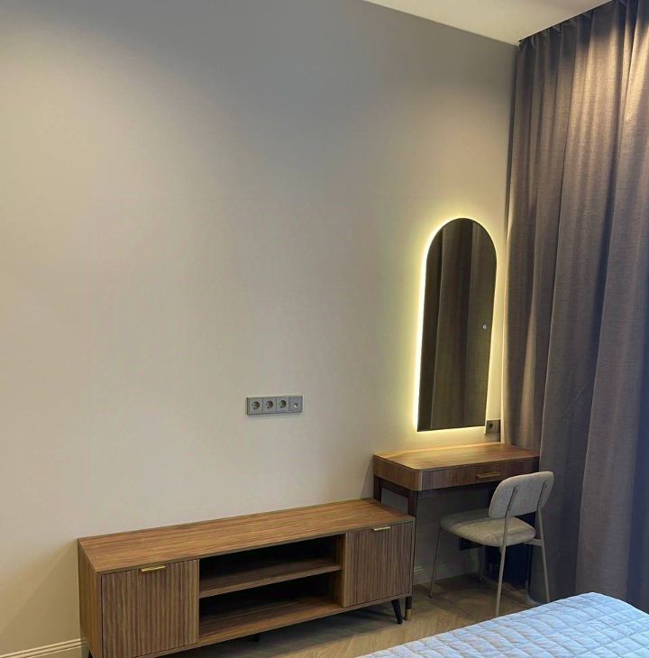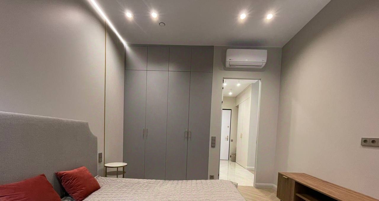 В квартире выполнен дизайнерский ремонт, вся необходимая мебель в кухне-гостиной и спальне. Вся техника в наличии: встроенный холодильник, кондиционер в каждой комнате, посудомоечная машина, стиральная машина с функцией сушки, ТВ.