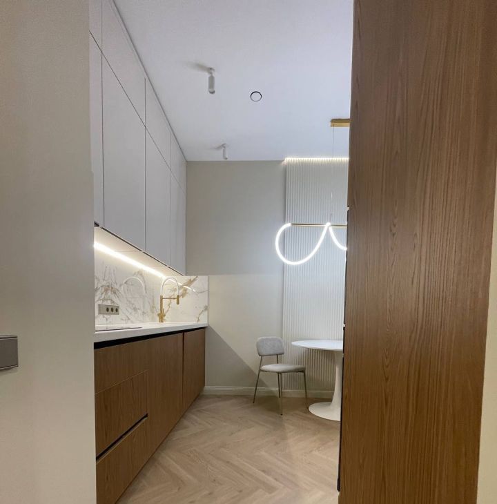 Идеальный вариант для аккуратной пары или одного человека (без детей и животных)! Компактная квартира 42 м² (огромная кухня-гостиная 19 м²). Первое заселение — дизайнерский ремонт, вся мебель и премиум-техника!